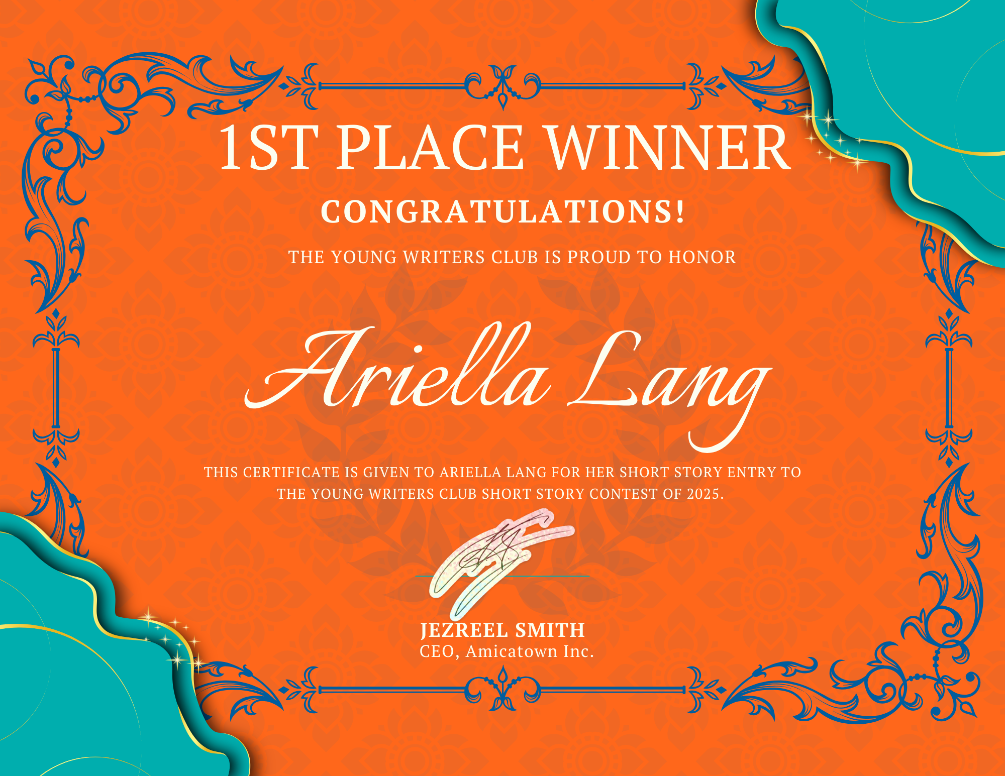 The Young Writers Club welcomes Ariella as the 1st place winner of the 2025 “Welcome to My World” Writing Contest.